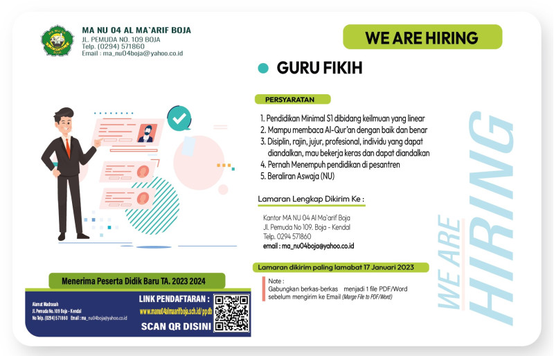 Nah kali ini ada loker Guru Fikih dari MA NU 04 AL MA'ARIF BOJA Kendal Jawa Tengah.